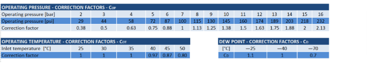 (¹) Refers to 1 bar(a) and 20 °C at 7 bar operating pressure , inlet temperature 35 °C and pressure dew point at outlet —40 °C
