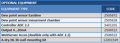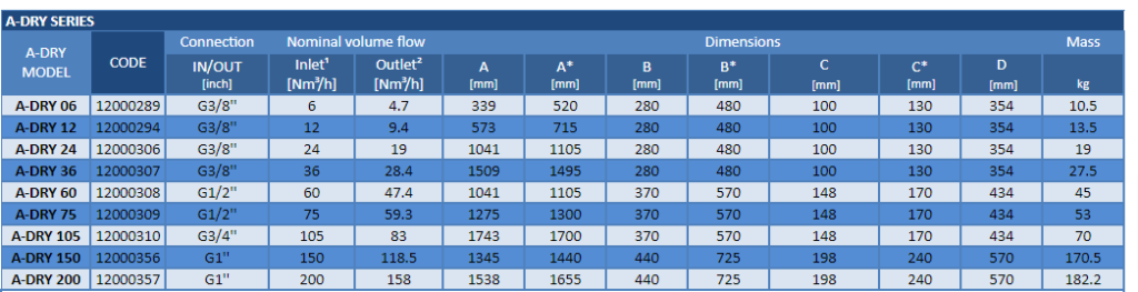 * If dryer is supplied without inlet filter compressed air class 1 (ISO 8753-1) for solid particles and oil should be provided to the inlet of the dryer.