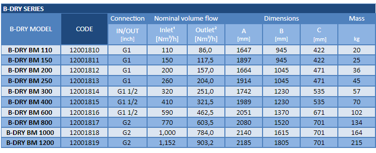 (¹) Refers to 1 bar(a) and 20 °C at 7 bar operating pressure , inlet temperature 35 °C and pressure dew point at outlet —40 °C