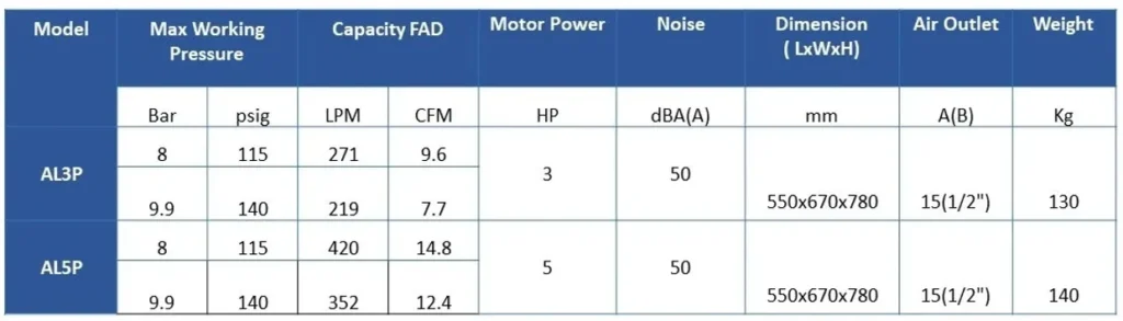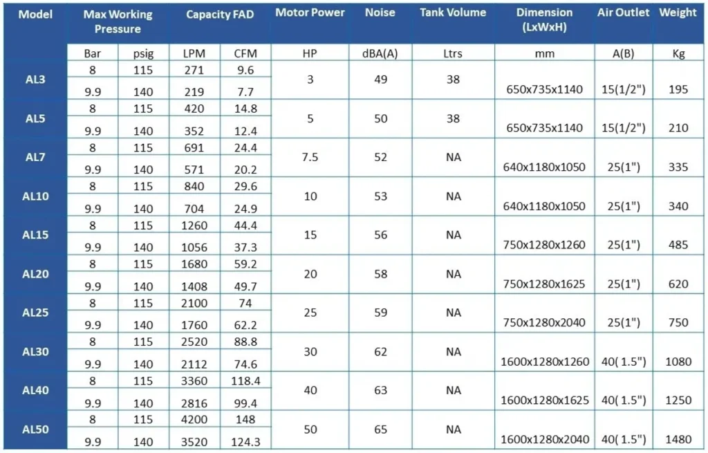 - Scroll Compressor is 100% Oil Free to meet NFPA standards whereas Screw compressor will be having oil carryover of 2-4 ppm