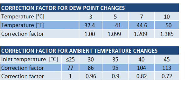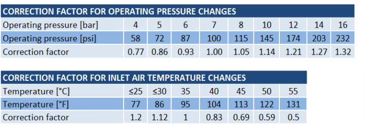 “Data refer to the following nominal condition: Ambient temperature of 25 °C, with inlet air at 7 barg and 35 °C and 3 °C pressure Dew Point (-20,5 °C atmospheric pressure Dew Point).